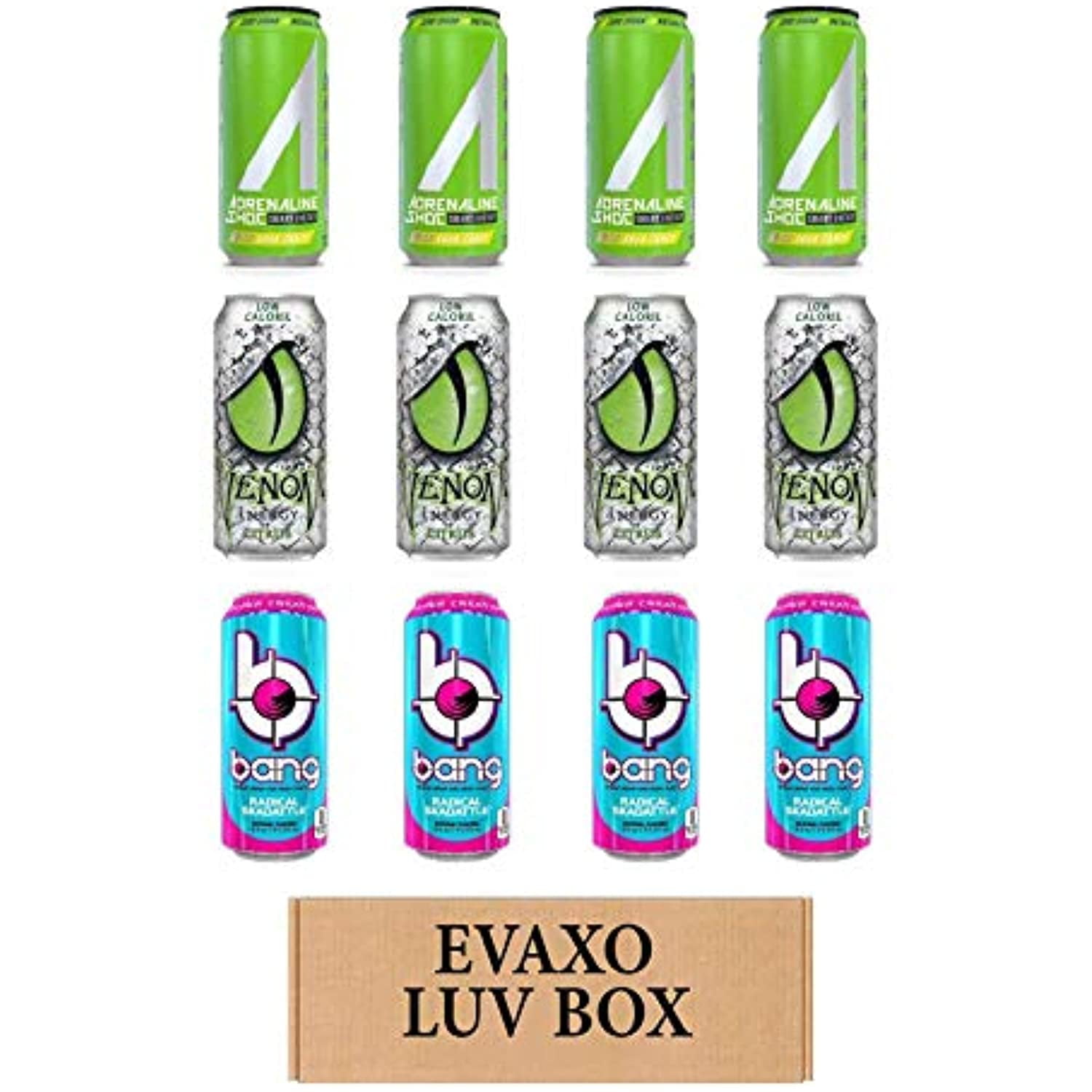 Luv Box Variety Energy Drink 16 Oz Pack Of 12 Adrenaline Shoc Smart Energy Sour Candy Venom Low Calorie Citrus Energy Drink Bang Radical Skadattle N Walmart Com